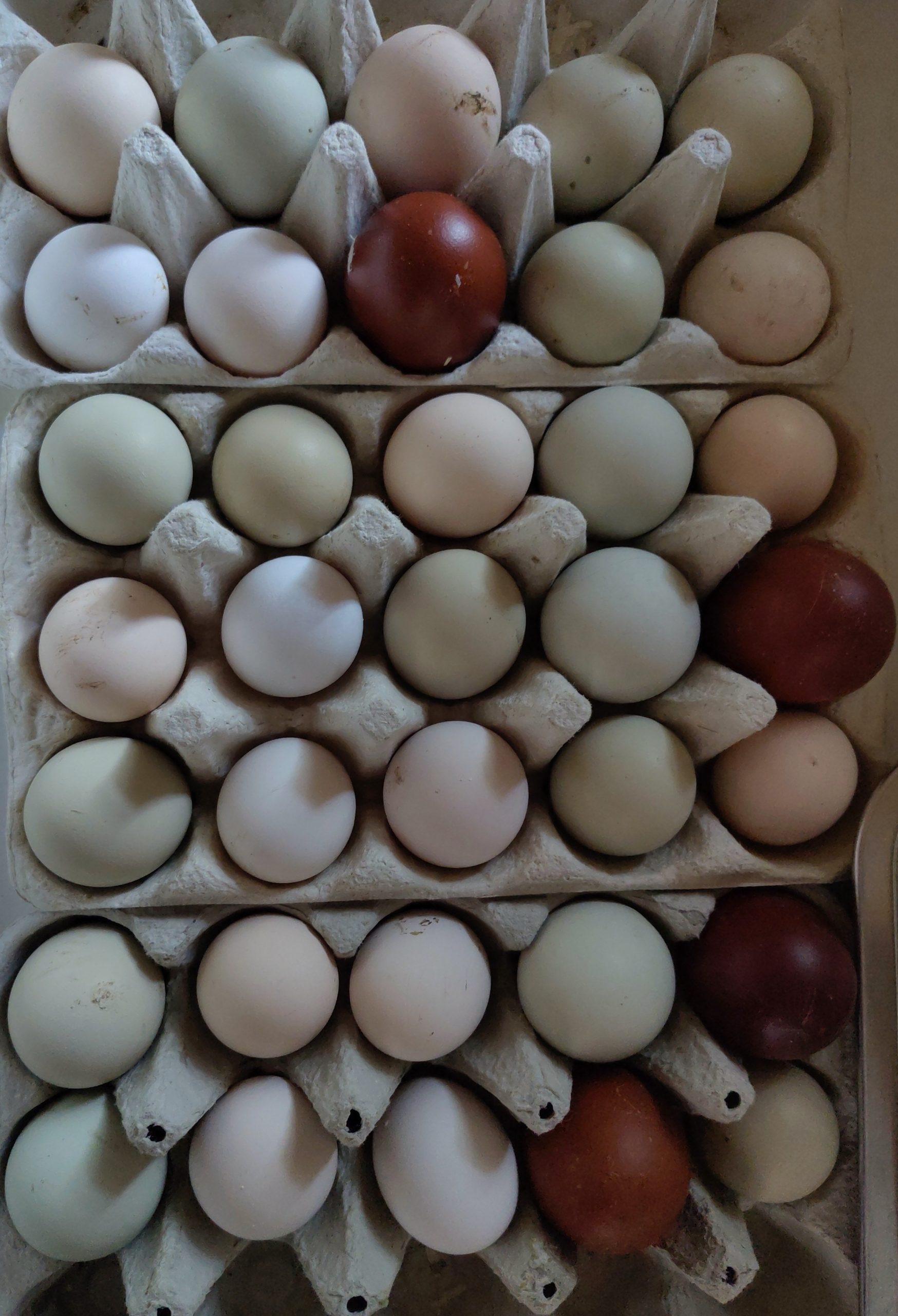Halutessasi voit käyttää myös siitosmunina, parvessamme on mukana kukkoja. Omissa haudonnoissa itävyys ja kuoriutuvuus ollut >80 %, mutta Postin käsittely huonontanee tulosta.